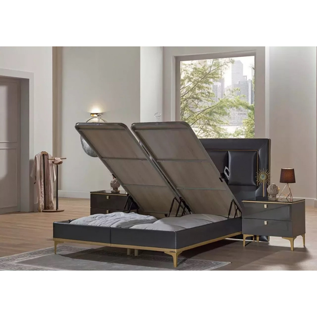 Кровать (база) без спинки CARLINO, щитовой конструкции на декоративных ножках c подъемным жестким основанием под матрас. Щитовой каркас кровати плита ЛДСП т.18мм, дно плита МДФ 6мм. Каркас обит поролоном, винилискожей двух цветов, основного цвета и в нижней части обивка винилискожа контрастного золотого цвета.  Жесткое основание кровати рамочной металлической конструкции на основе трубы профильной размером 20х30,20х20 с подъемным механизмом. Настил основания поролон т.3мм, основание обито тканью. Сборка каркаса базы на шкант, скобу металлическую, уголок пластмассовый. Подъемный механизм устанавливается при помощи винтов и винтов с гайками. Ножки кровати пластмассовые, четыре ножки декоративные, шесть опорных круглых ножек, ввинчивающихся для двойных баз. На дно базы устанавливается аэратор пластмассовый с логотипом Bellona для    кондиционирования воздуха. Ручка -держатель для подъемного основания металлическая.