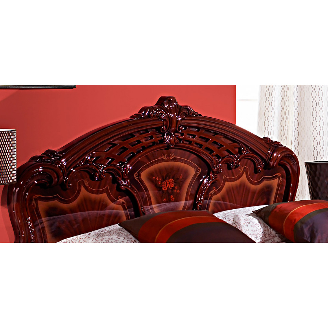 Двуспальная кровать Роза (могано) от Российской фабрики "ДИА мебель". Выполнена в элегантном классическом стиле. Такая большая и комфортная кровать с ортопедическим основанием, поможет Вам расслабиться и насладиться хорошим отдыхом после рабочего дня. Она выполнена в цвете могано с глянцевым покрытием, и золотистым орнаментом на фасадах. Обращает внимание на себя декоративная фрезеровка изголовья кровати. Такая модель двуспальной кровати, с легкостью обратит внимание на прекрасное чувство стиля своего владельца и классический дизайн его спальни.