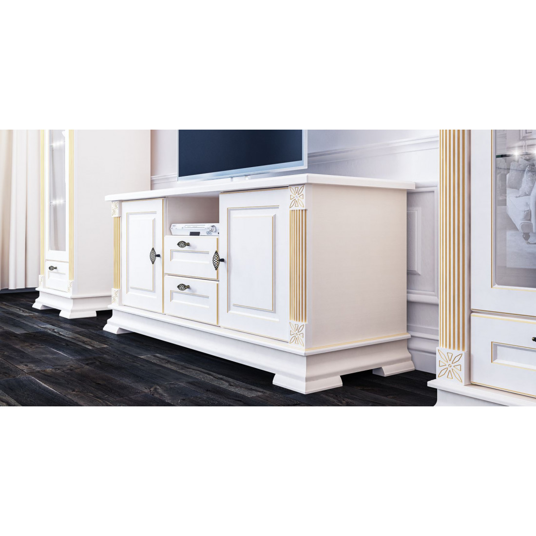 Витрины гостиной Афина послужат прекрасной основой, а тумба для телевизора и настенная полка, прекрасным дополнением комплекта.