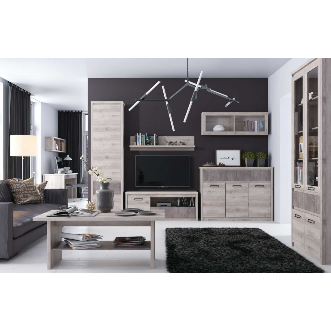 Гостиная Джаз выполнена в современном стиле. Отличительной особенностью этой коллекции является одновременное применение двух вариантов открывания двери: при помощи металлических ручек на одних фасадах и внутренней фрезеровки на других. Фасады выдвижных ящиков могут быть выполнены как в цвете оникс, так и в цвете каштан найроби. Эта мебель станет заслуженным украшением для любого интерьера.