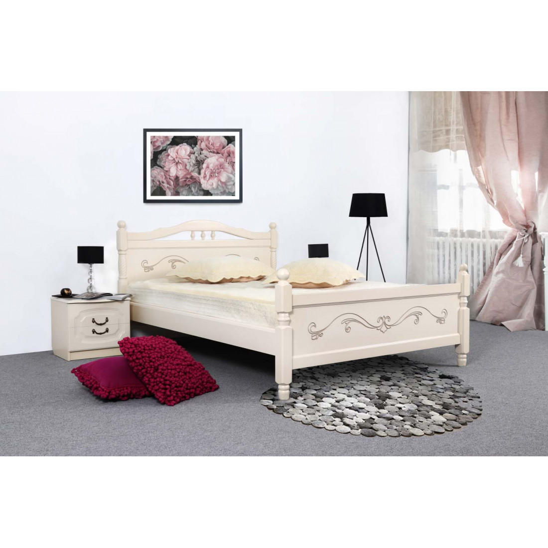 Стильная двуспальная кровать из массива сосны Людмила-17 тонированная от фабрики МебельГрад.