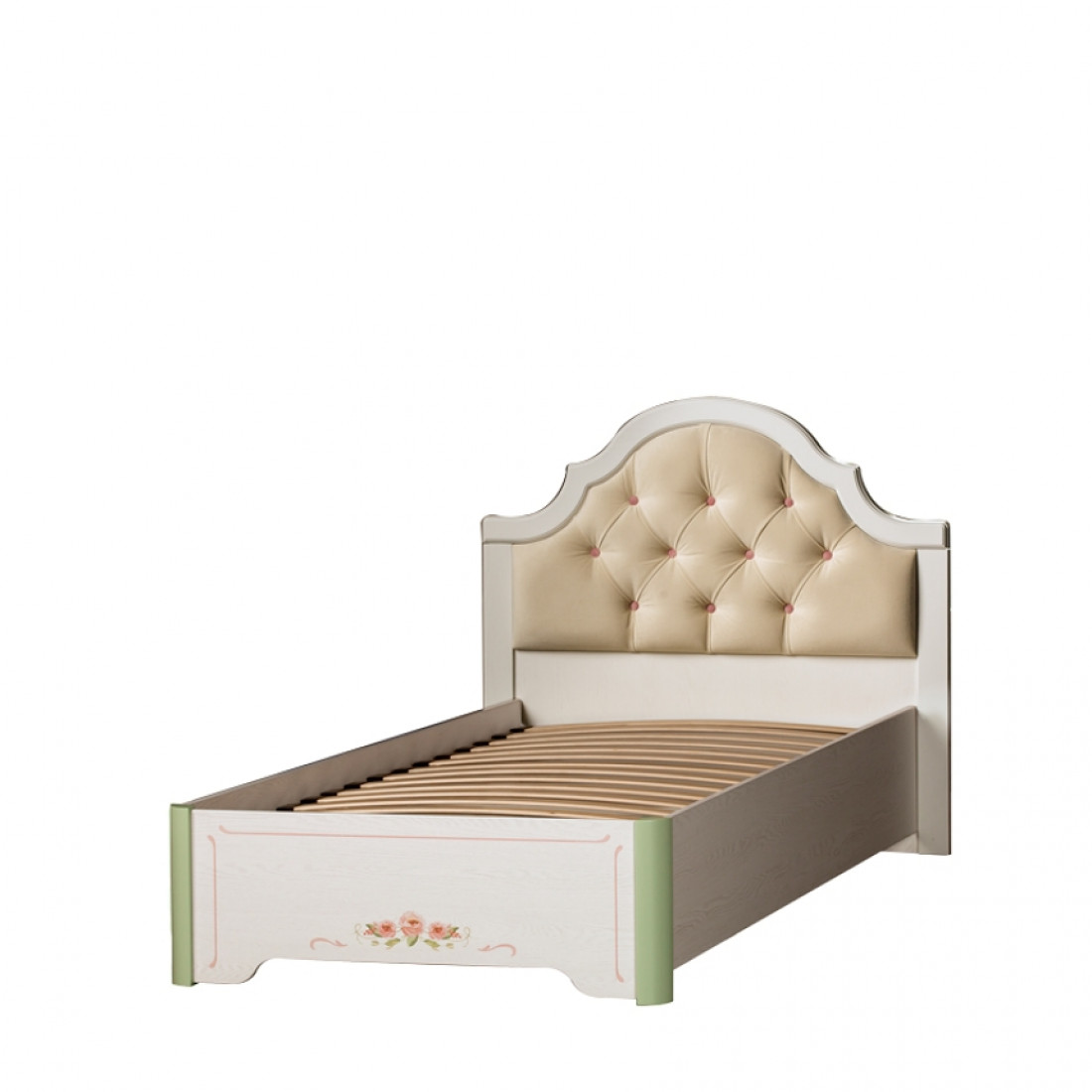 Корпус: ДСП, декор – ясень белый. Основание кровати – ламели