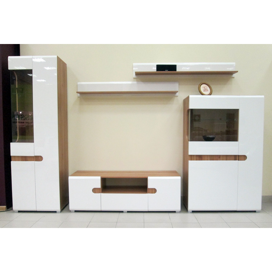 Модульная мебель для гостиной Леонардо белый глянец композиция 1