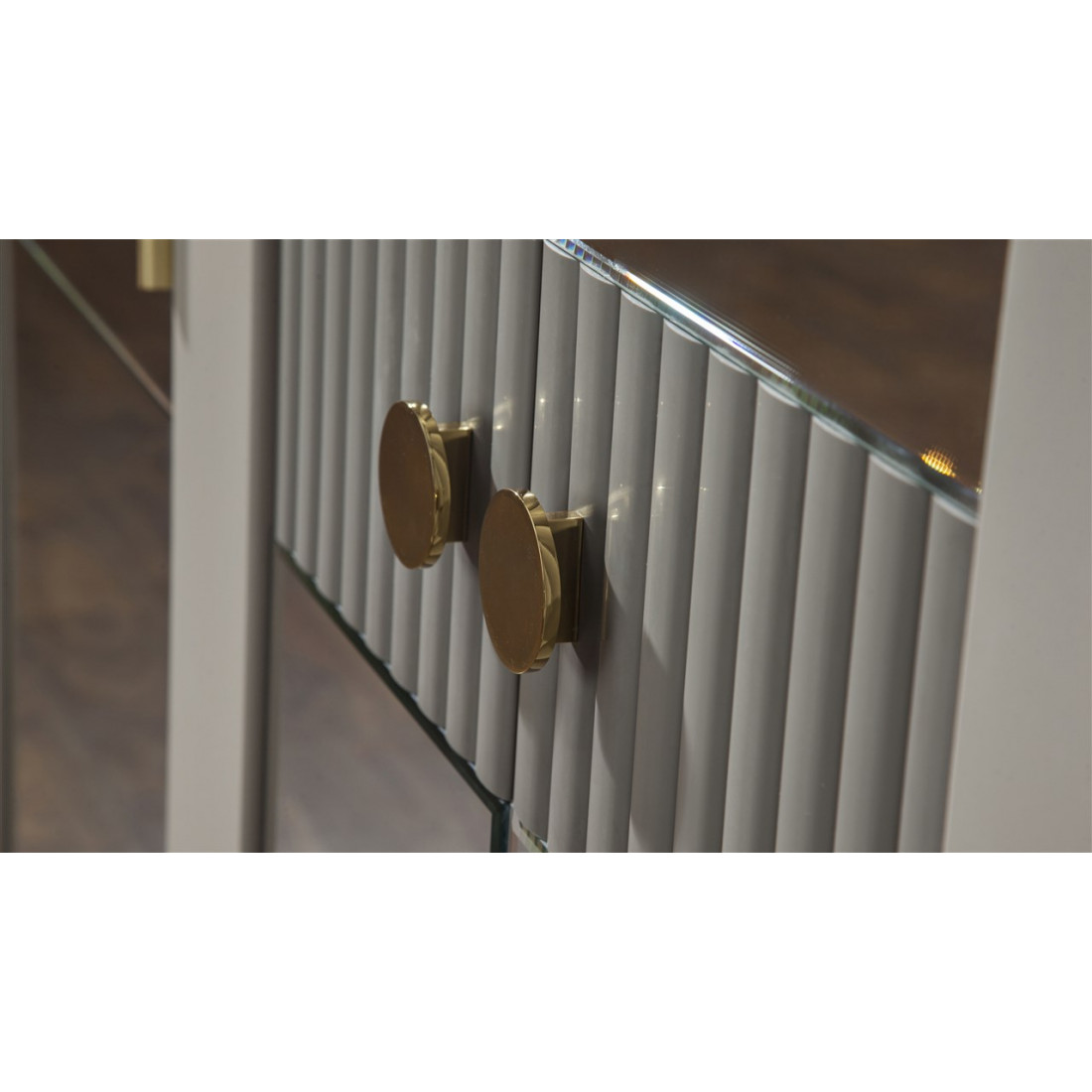 Шкаф платяной 6-дверный серии Pesaro Bellona. Изготовлен из высококачественного ЛДСП производства Турция, класс эмиссии формальдегидов Е1. Зеркальная дверь в центре с прямоугольной ручкой, двери справа и слева со вставками серого цвета и большими круглыми ручками под бронзу. Ножки и рамка из натурального дерева с оттенком медовый орех. Размеры и наполнение шкафа позволит аккуратно разместить большое количество вещей. Двери и ящики с доводчиками, обеспечивающими плавный ход и безопасность.