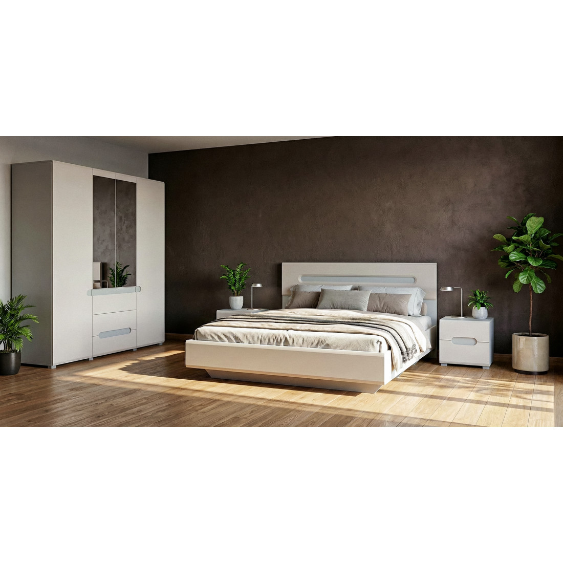 Интернет-магазин Меланго рекомендует купить спальню Леонардо от Мебель-Неман всем, кто расчитывает приобрести максимум комфорта и удобства за разумные деньги и кого привлекает лаконичность минималистичных направлений в дизайне. В состав набора входит, все, что требуется для отдыха и сна: кровать с двумя прикроватными тумбами, вместительный бельевой комод и многофункциональный шкаф с двумя зеркальными створками.