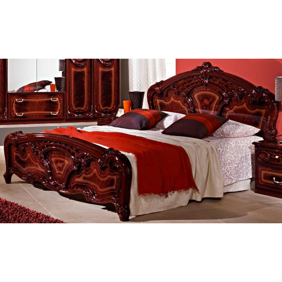 Спальня Роза (могано) от Российской фабрики "ДИА мебель". Выполнена в классическом стиле. Такая спальня коллекции Роза порадует Вас своим дизайном и многофункциональностью. Цвет могано в сочетании с глянцевым покрытием и орнаментом на фасадах, придает этой модели еще изысканности и подчеркивает прекрасное чувство стиля своего владельца. Поможет насладиться прекрасным вечером после трудного дня.