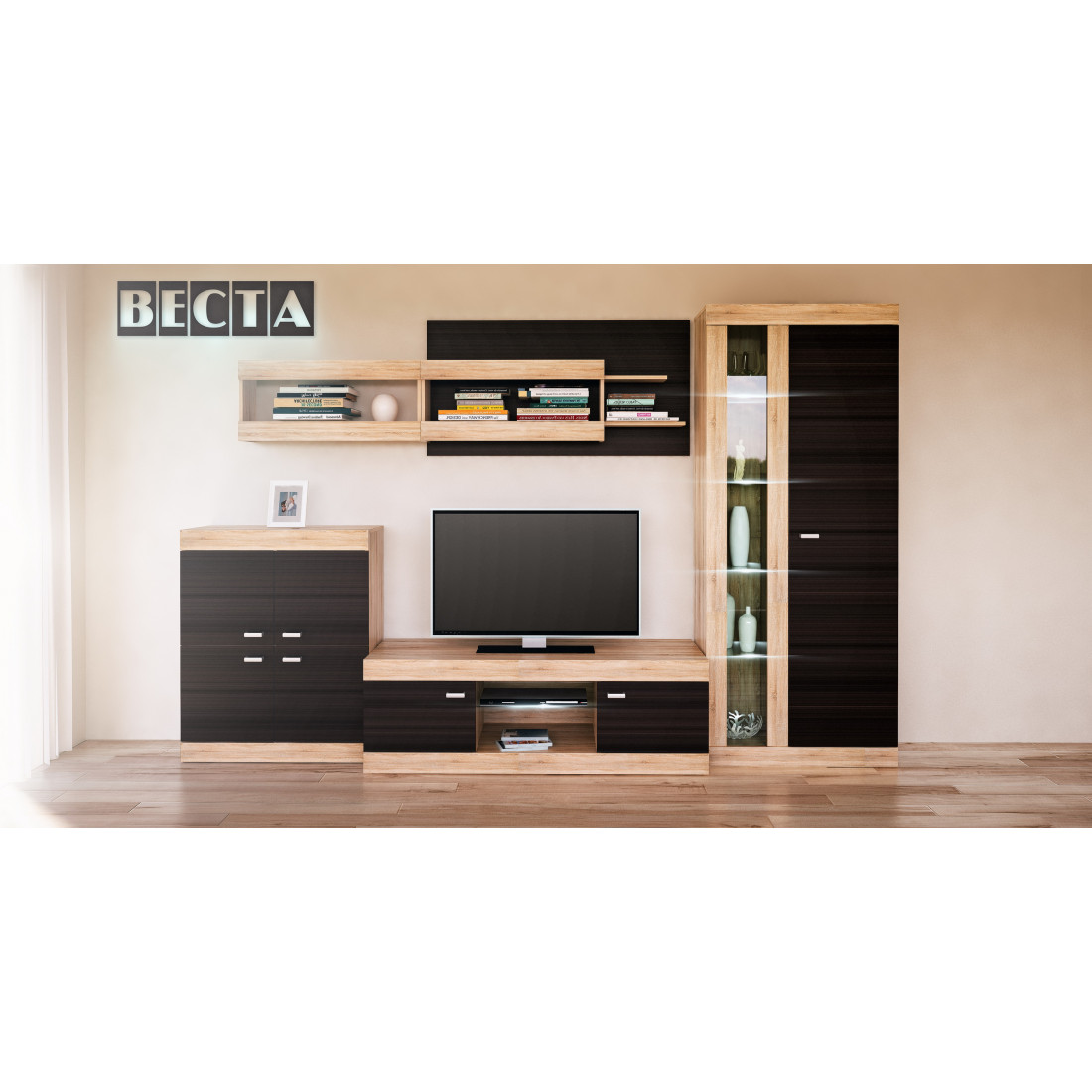 Тумба для гостиной Веста имеет 4 маленькие дверки и служит дополнением к другим модулям гостиной.